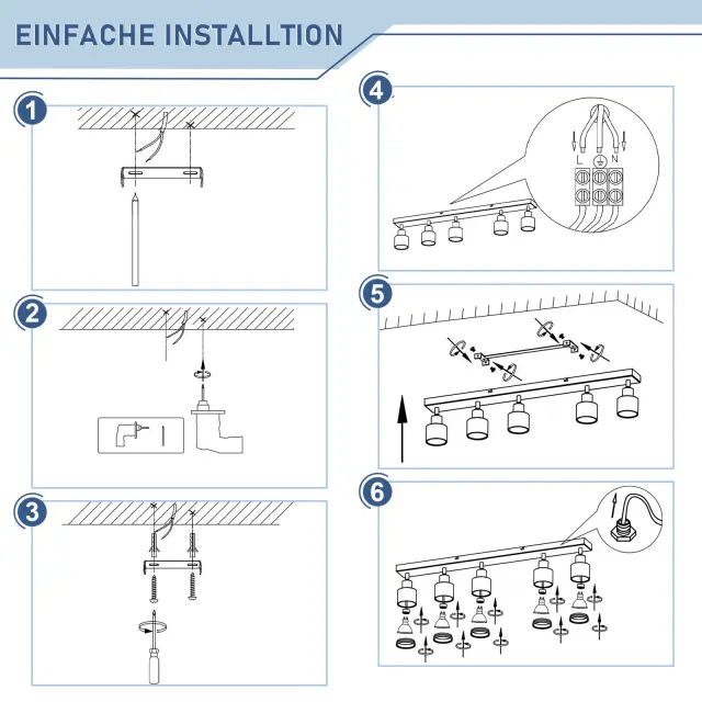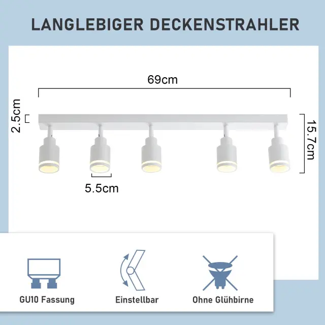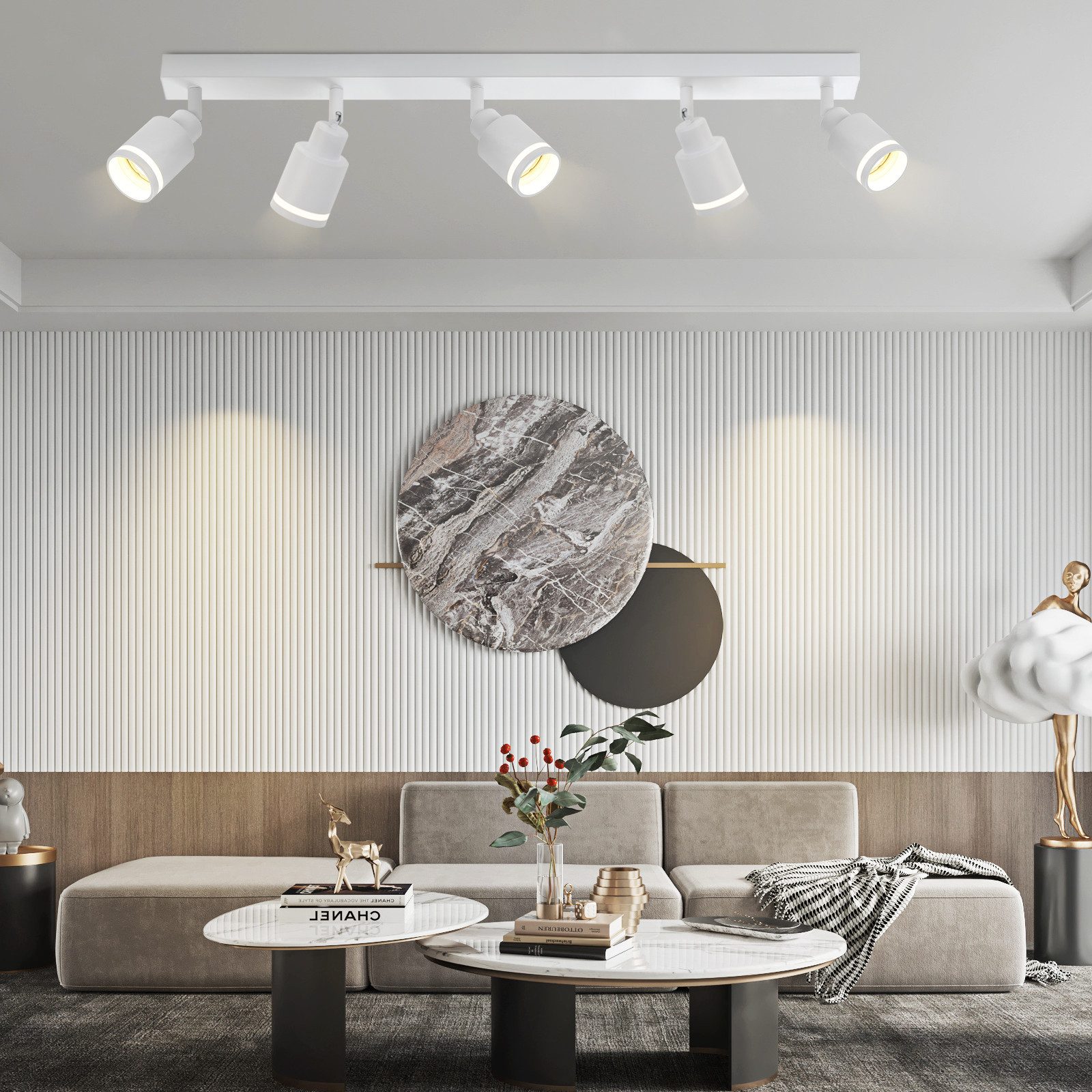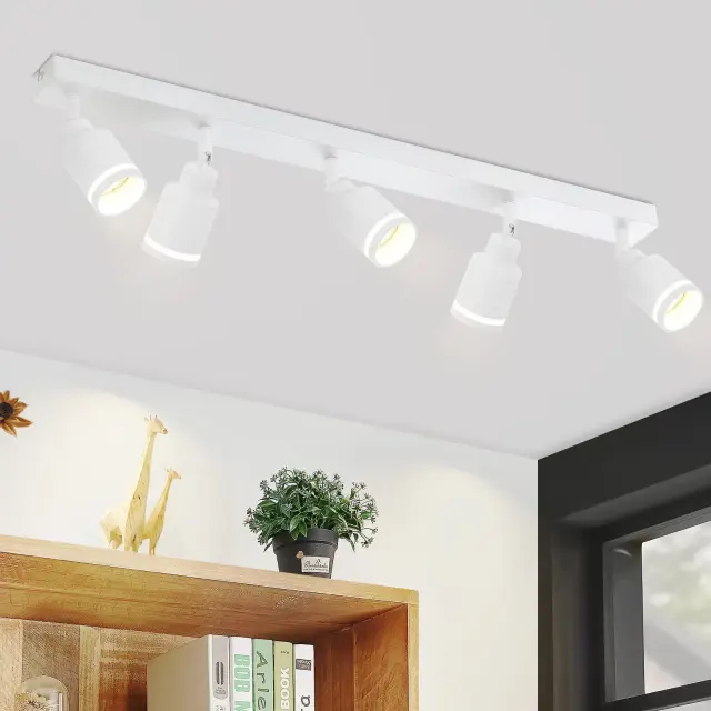 NETTLIFE Moderna bela stropna svetilka: 5 nastavljivih kovinskih stropnih reflektorjev, stropna svetilka GU10, za spalnico, brez žarnice