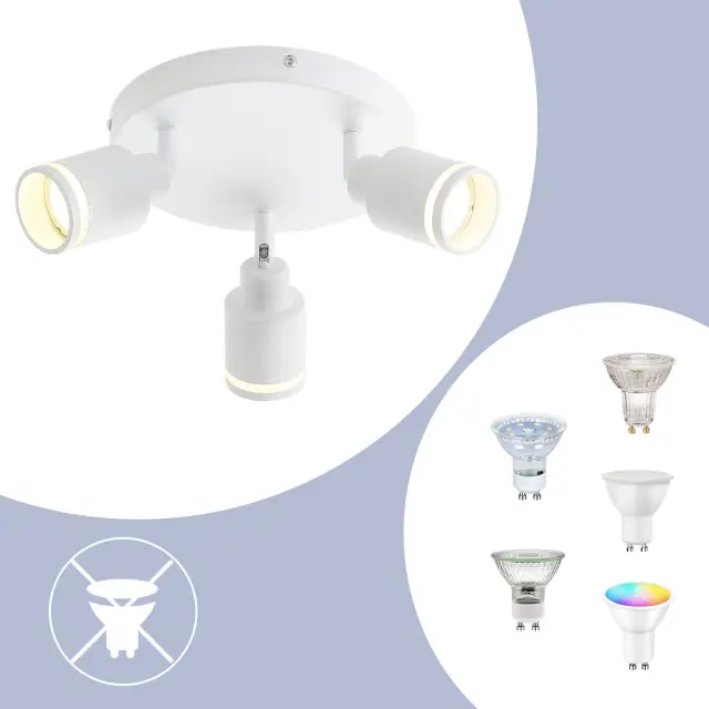 NETTLIFE Moderna bela stropna svetilka: 3 nastavljivi kovinski stropni reflektorji, stropna svetilka GU10, za spalnico, brez žarnice