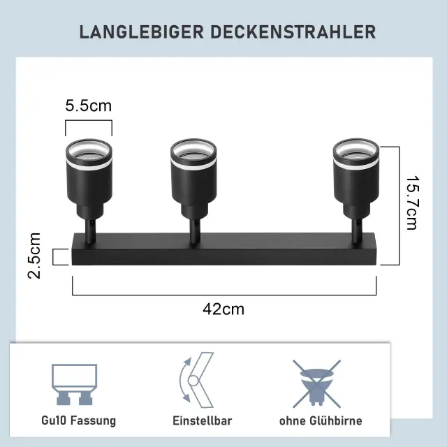 NETTLIFE moderna črna stropna svetilka: 3 nastavljivi kovinski stropni reflektorji, stropna svetilka GU10, za spalnico, brez žarnice