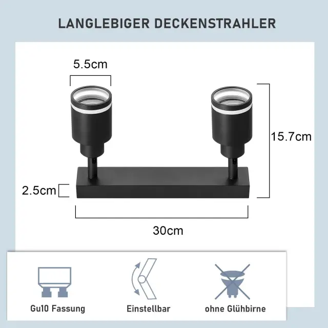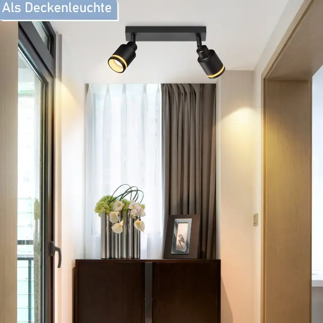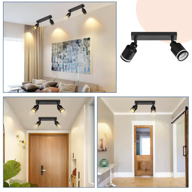 NETTLIFE Moderna črna stropna svetilka z 2 nastavljivima žarnicama GU10, kovinska