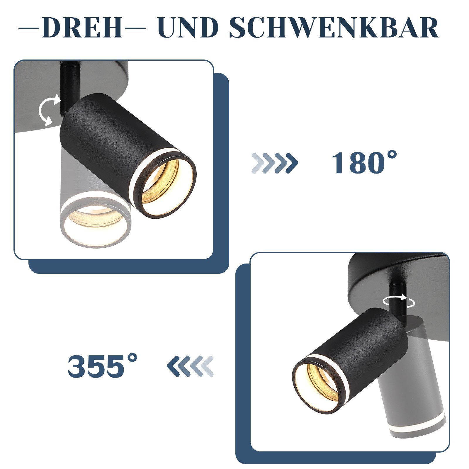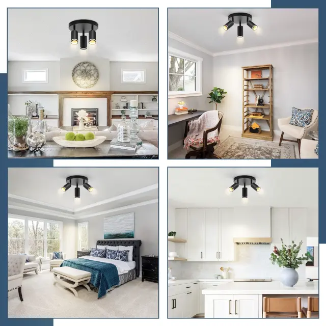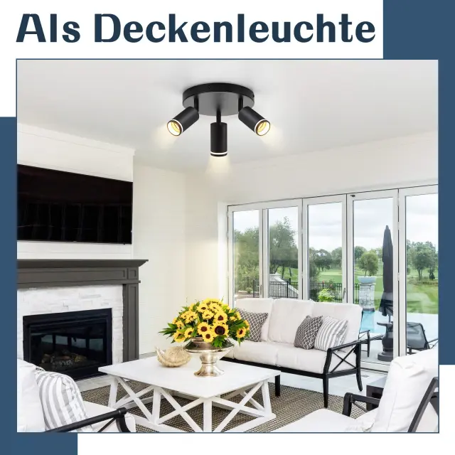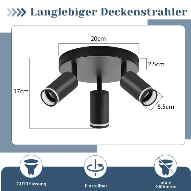 NETTLIFE moderna črna stropna svetilka: 3 nastavljivi kovinski stropni reflektorji, stropna svetilka GU10, brez žarnice