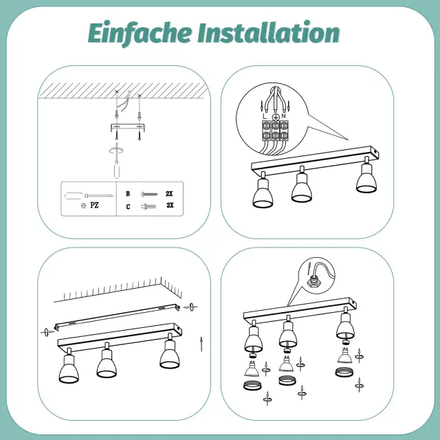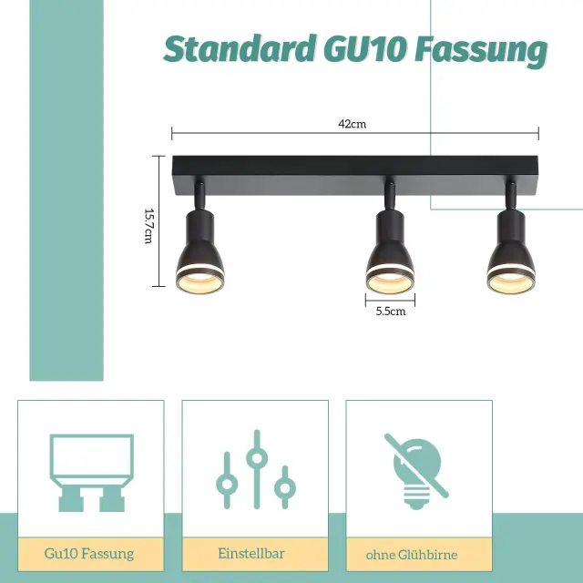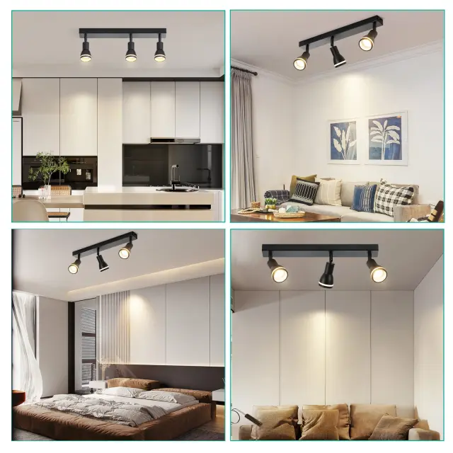 NETTLIFE moderna črna stropna svetilka: 3 nastavljivi kovinski stropni reflektorji, stropna svetilka GU10, za spalnico, brez žarnice