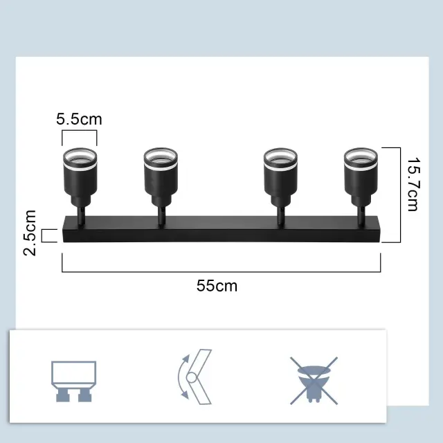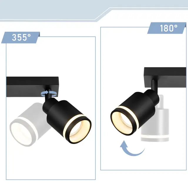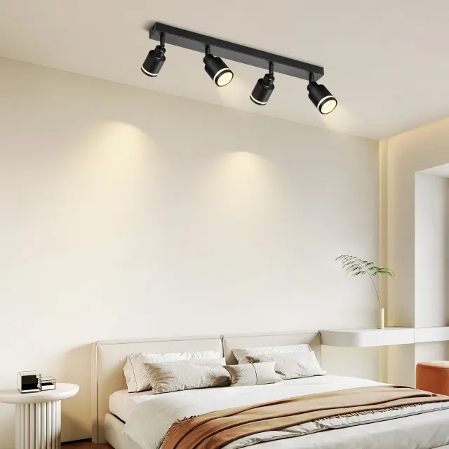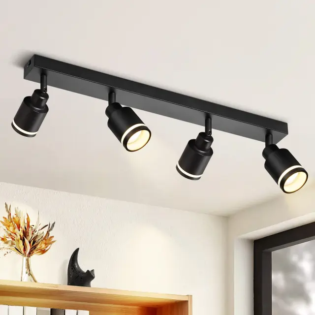 NETTLIFE Moderna črna stropna svetilka: 4 kovinski reflektorji GU10, nastavljivi, za spalnico, jedilnico, žarnice niso priložene