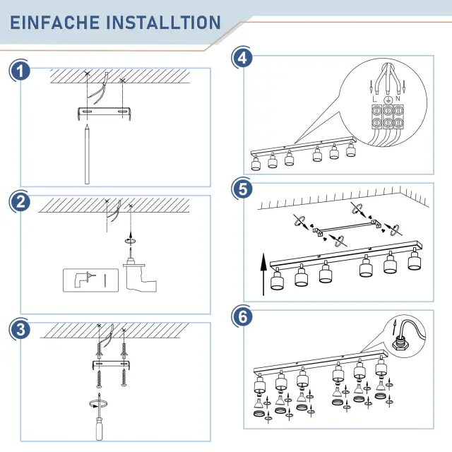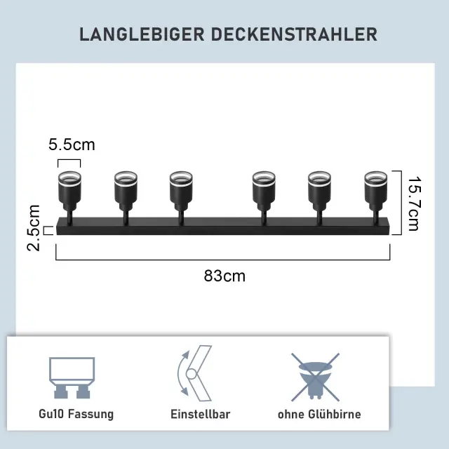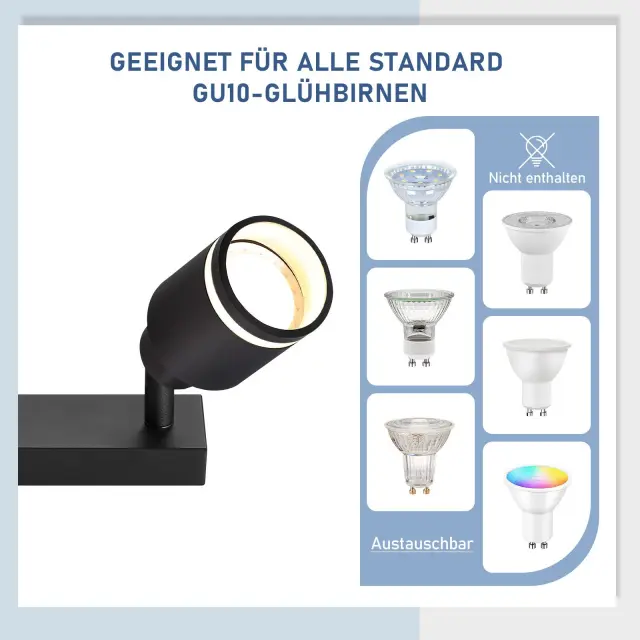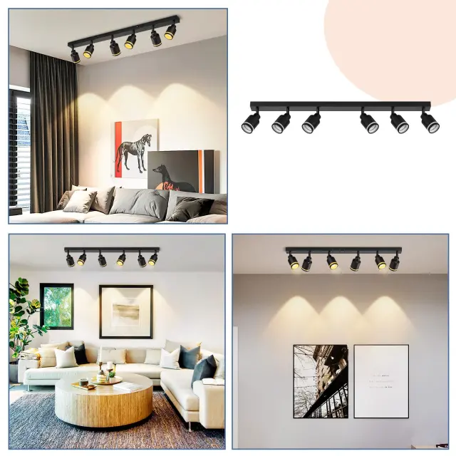 NETTLIFE Moderna črna stropna svetilka: 6 nastavljivih kovinskih stropnih reflektorjev, GU10 za spalnico, jedilnico, brez žarnice