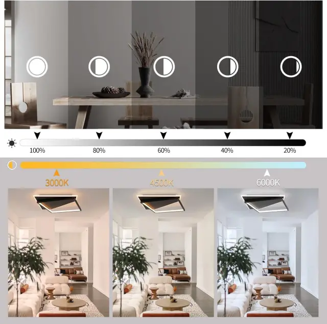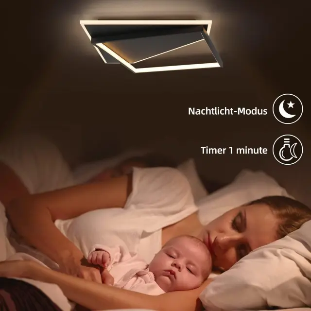 NETTLIFE Moderna LED stropna svetilka 53W Črna, zatemnljiva z daljinskim upravljalnikom, dnevna soba za spalnico, kuhinjo, hodnik, pisarno