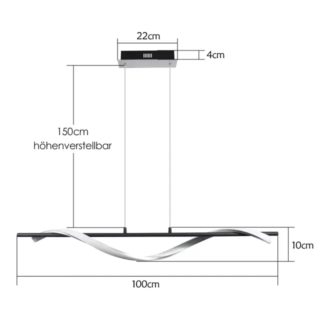 NETTLIFE Moderna LED viseča svetilka z možnostjo zatemnitve, 22 W, srebrna, premer 100 cm, valovit dizajn iz aluminija