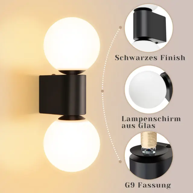 NETTLIFE Moderna notranja stenska svetilka iz belega in črnega stekla, 2 žarnici max 25W G9 (brez žarnic)
