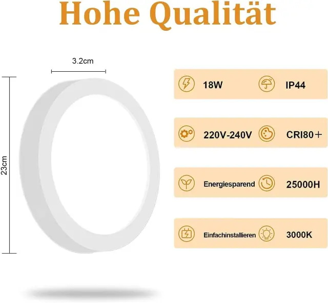 NETTLIFE Moderna okrogla LED stropna svetilka, bela, za hodnik, 3000K, 18W, IP44, vodoodporna za kuhinjo, pisarno, otroke, kopalnico