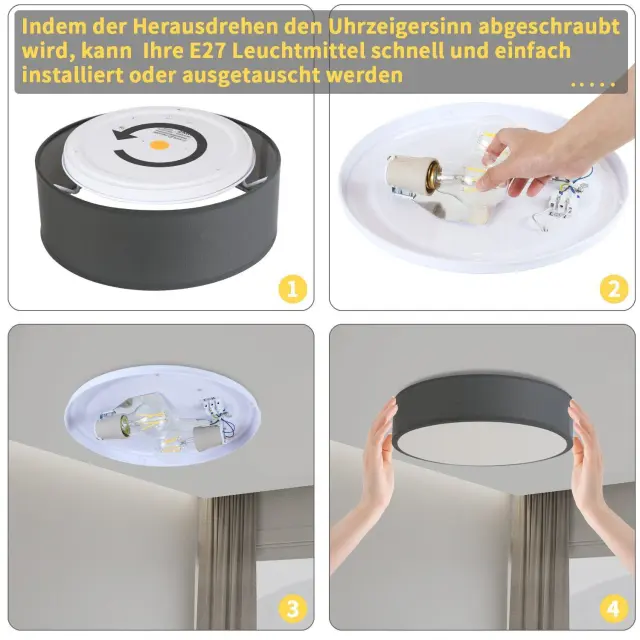 NETTLIFE Moderna okrogla stropna svetilka E27 38CM Siva 2 žarnici Max. 25W s senčnikom iz blaga Spalnica Svetilka za dnevno sobo, kuhinjo, hodnik