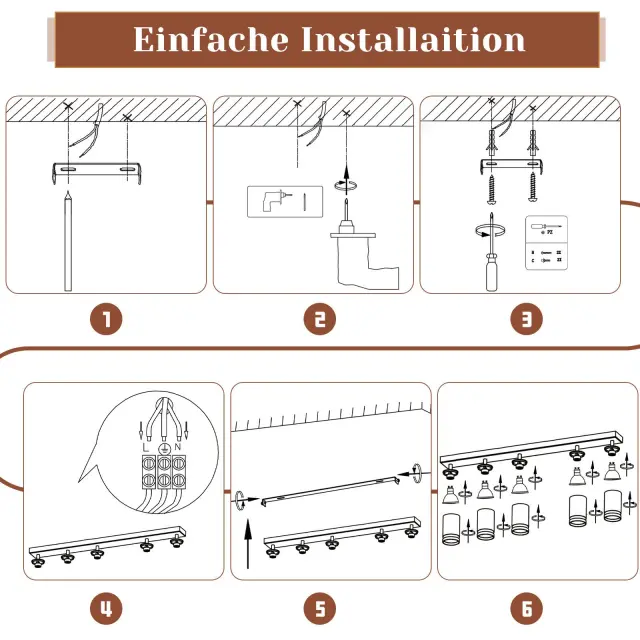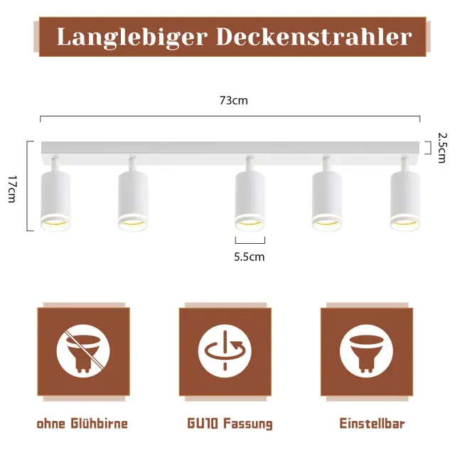 NETTLIFE Moderna stropna svetilka s 5 točkami: Bela stropna svetilka GU10, kovinska notranja svetilka za dnevno sobo, brez žarnice