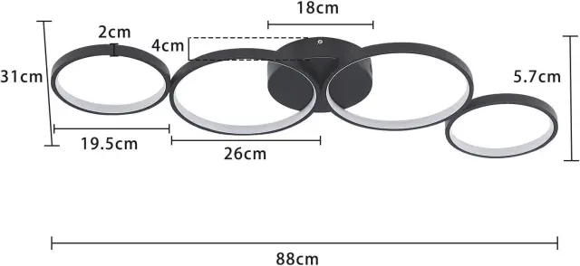 NETTLIFE Moderna zatemnljiva LED stropna svetilka, črna, 88 cm, 55 W, z daljinskim upravljalnikom, zatemnljive 4 luči, sodoben dizajn