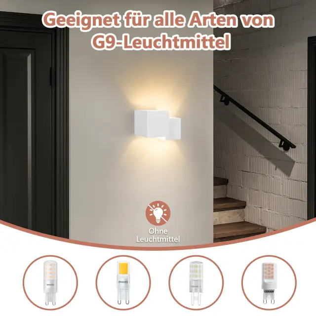 NETTLIFE notranja stenska svetilka iz belega mavca G9 moderna za hodnik, stopnišče, gor in dol