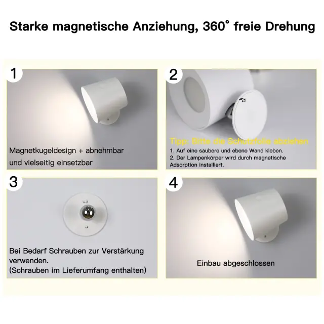 NETTLIFE Notranja stenska svetilka brez napajanja: LED stenska svetilka s stikalom eBela Brezžična stenska osvetlitev na dotik, spremenljiva