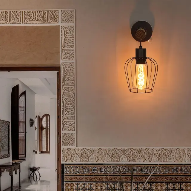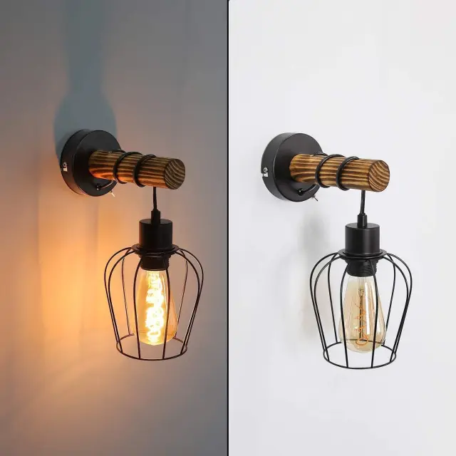 NETTLIFE notranja stenska svetilka, les vintage retro z stikalom, industrijski dizajn E27, črna stenska spot svetilka s kovino