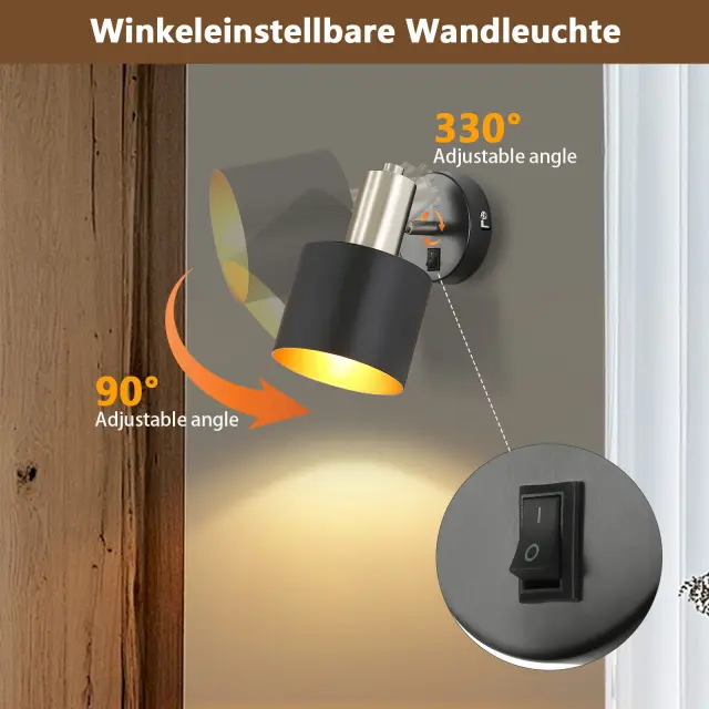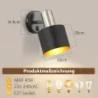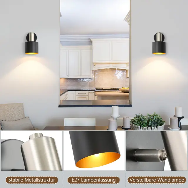 NETTLIFE Notranja Stenska Svetilka Vintage Črna 330° Vrtljiva E27 Mala Kovinska