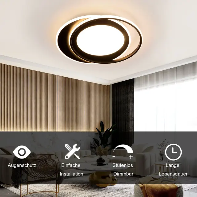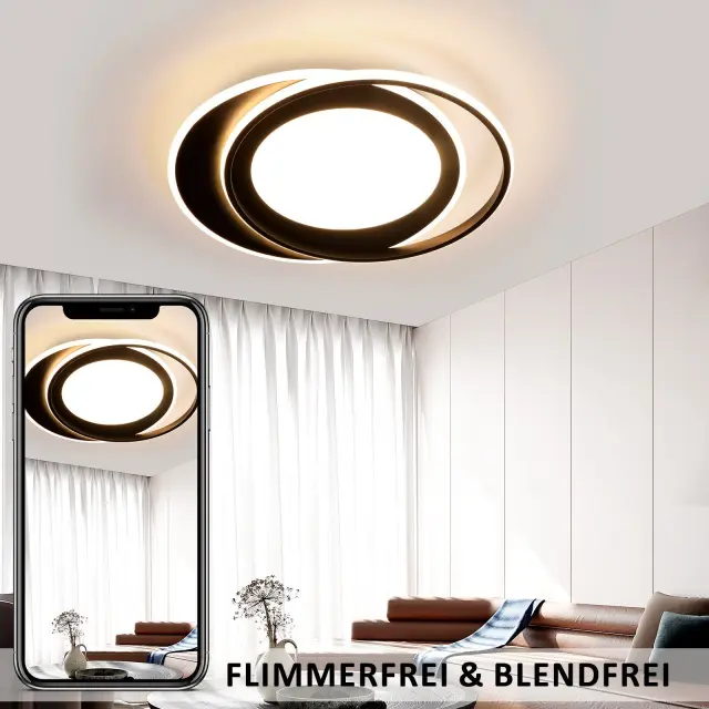 NETTLIFE okrogla LED stropna svetilka 66W moderna 48,5 cm spalnica črna zatemnljiva z daljinskim upravljalnikom za dnevno sobo kuhinjo hodnik pisarno