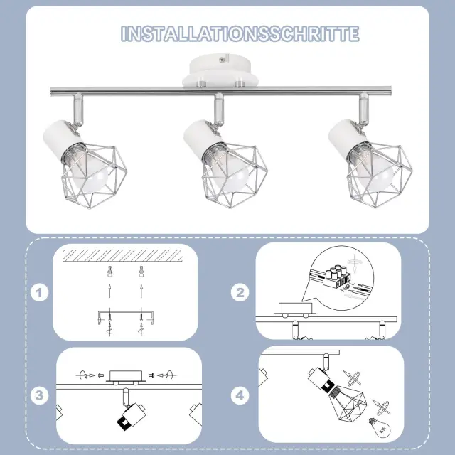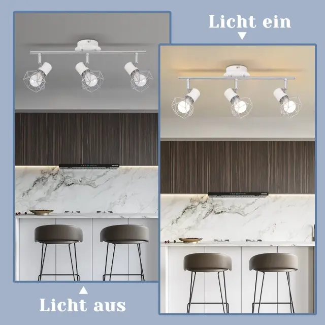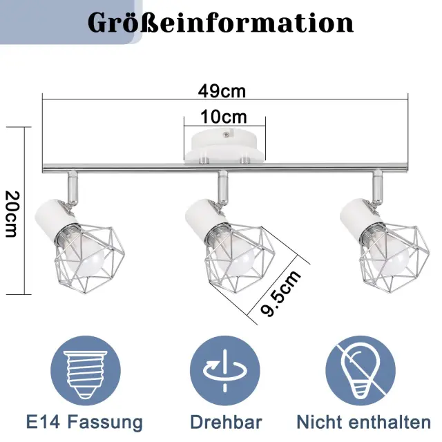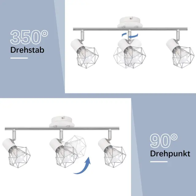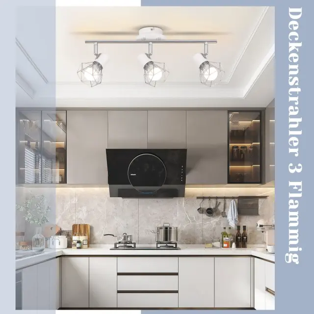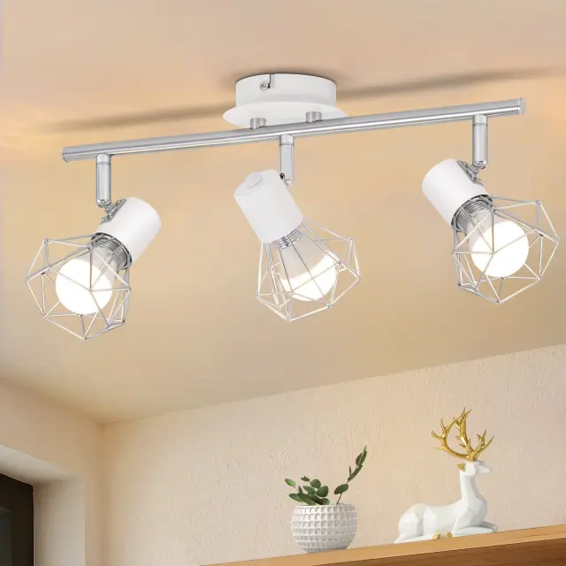 NETTLIFE Okrogla stropna svetilka s 3 lučmi - Retro industrijska stropna svetilka E14 brez žarnic