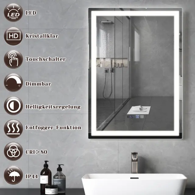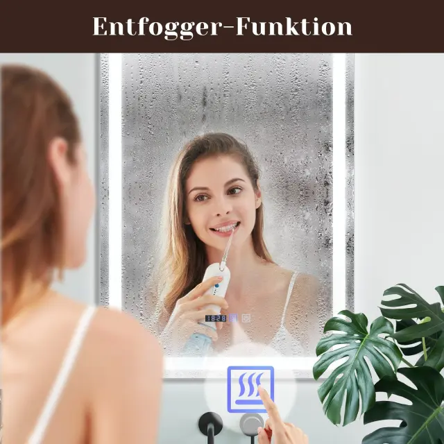 Razgubljevalnik megle: Ogledalo ima vgrajeno protimagelno funkcijo, ki zagotavlja jasno površino tudi v vlažnem okolju. Funkcija preprečuje zamegljevanje po tuširanju ali kopanju, zato lahko ogledalo takoj uporabljate brez čakanja.