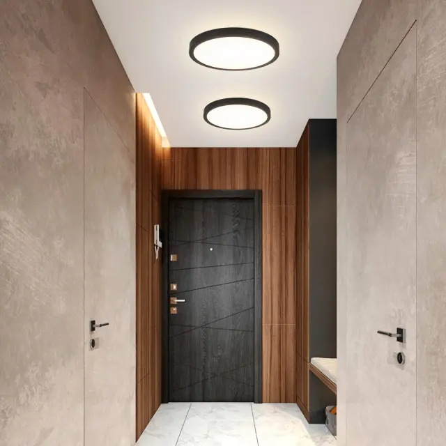 NETTLIFE Ploska LED stropna svetilka 18 cm - 15 W, črna, 4000 K - Moderna razsvetljava za kuhinjo, hodnik, spalnico