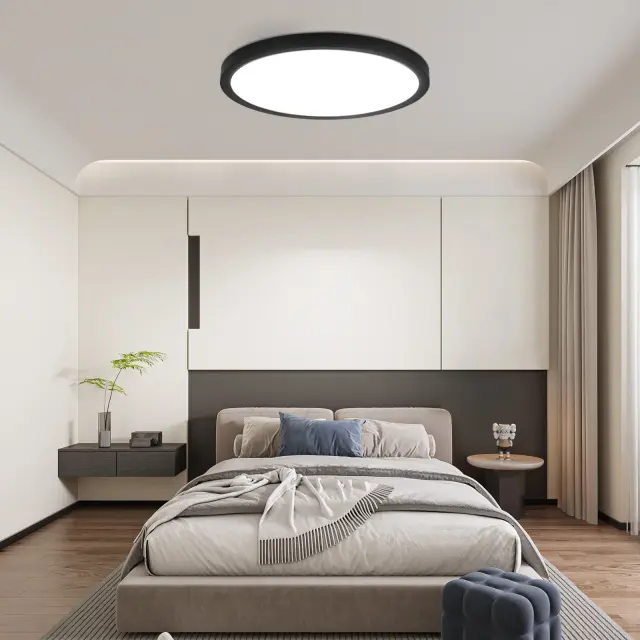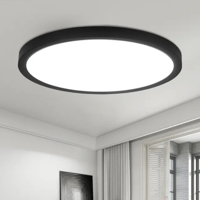 NETTLIFE Ploska LED stropna svetilka 30 cm - 24 W, črna, 6000 K - Moderna razsvetljava za kuhinjo, hodnik, spalnico