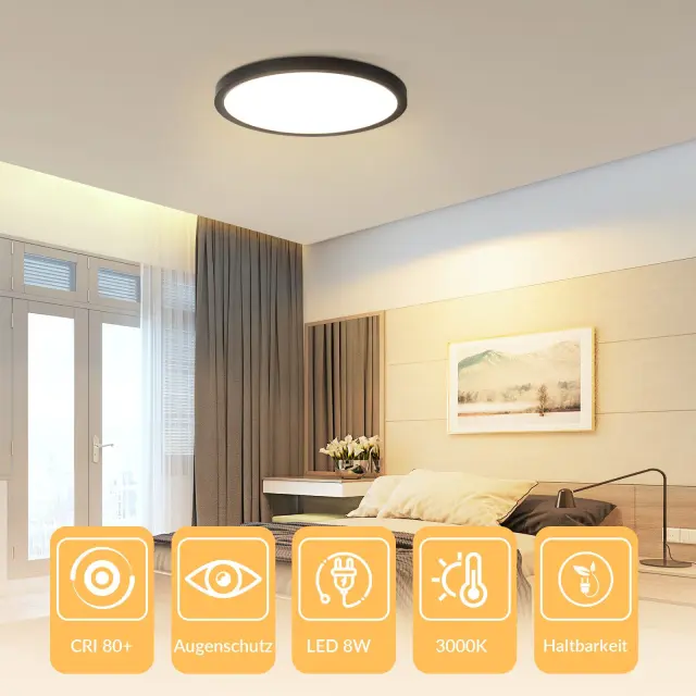NETTLIFE ravna LED stropna svetilka črna 18 cm 15 W okrogla majhna toplo bela LED trajno integrirana 3000K