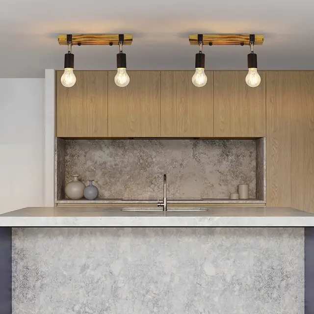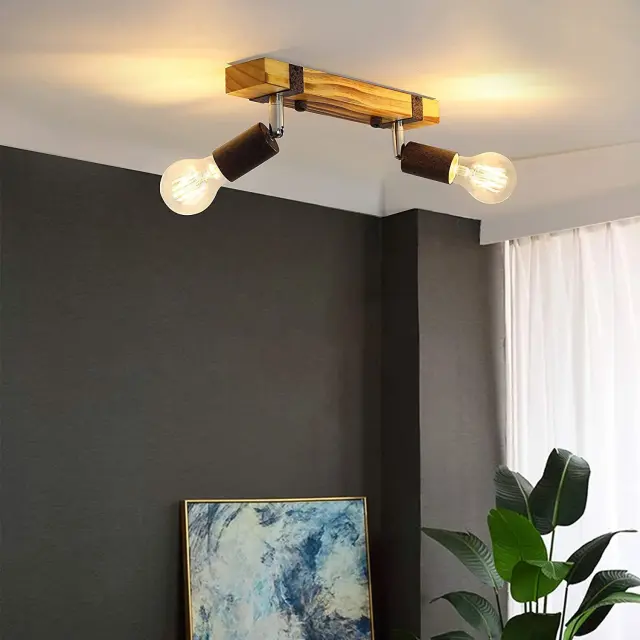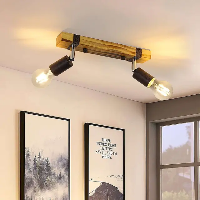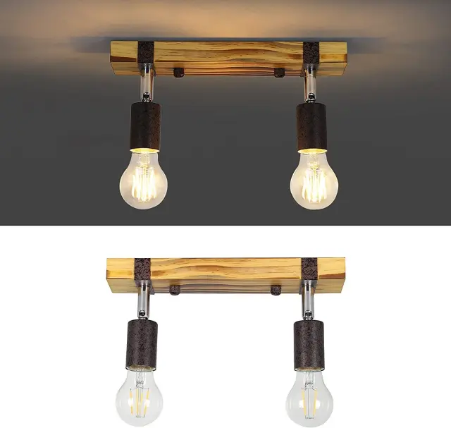 NETTLIFE Retro stropna svetilka z 2 lučema, zatemnljiva, z lesenim nosilcem, nastavljiva LED, zamenljiva