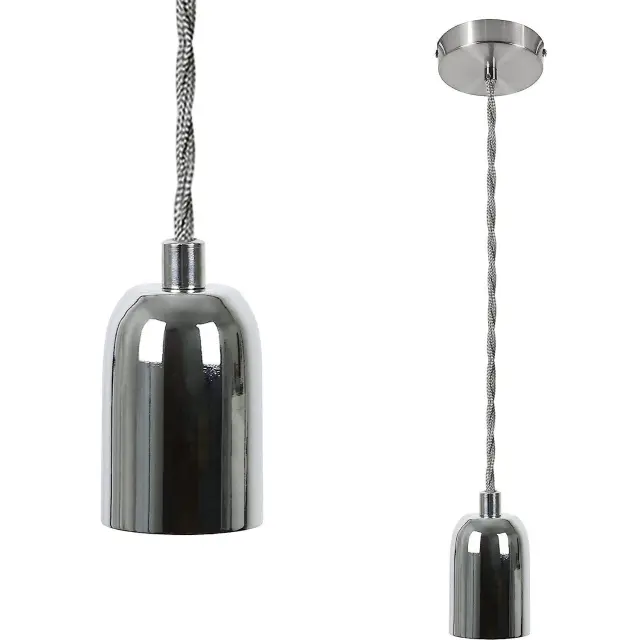 NETTLIFE Srebrna kovinska viseča svetilka Diam.10cm E27 Vintage z 1,3M industrijskim kablom Edison in stropnim nosilcem