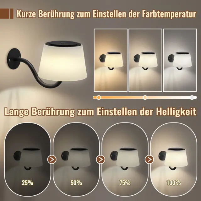Večnamenska osvetlitev: S tremi načini barvne temperature (hladna bela, nevtralna bela, topla bela) in nastavljivo svetlostjo se ta LED stenska svetilka enostavno prilagaja s pomočjo dotiknega stikala, da ustreza vašim razsvetljavskim potrebam.