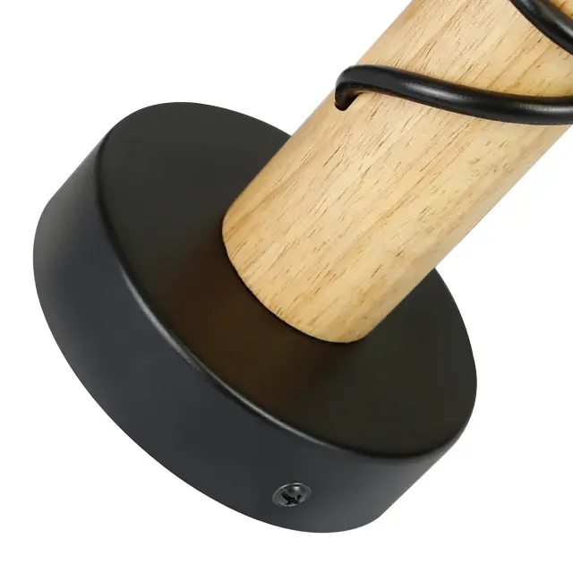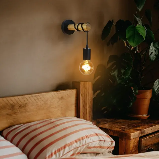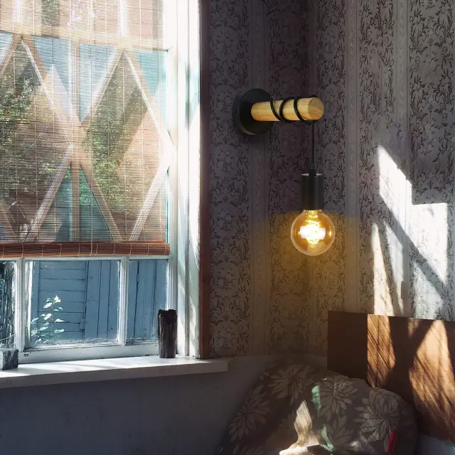 NETTLIFE stenska svetilka, retro industrijski les, črna kovina E27, pisarna