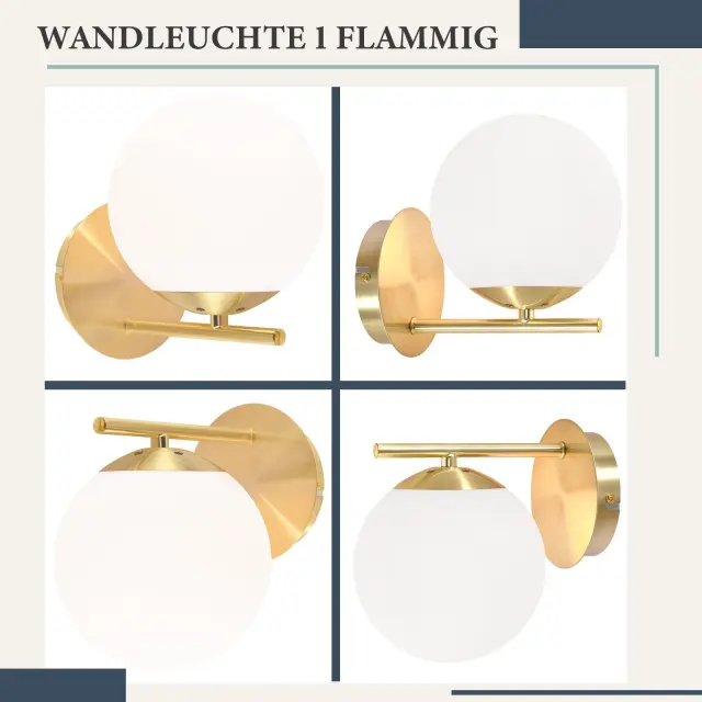 NETTLIFE Stenska svetilka Notranja Spalnica Hodnik Zlata Steklena Krogla Vintage E27 Kovinska Nočna Svetilka
