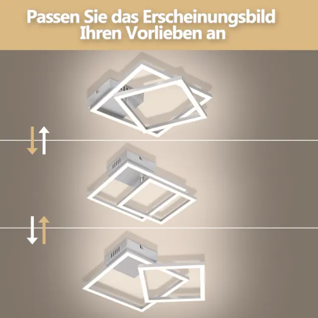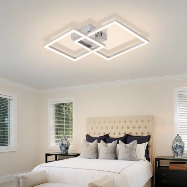 VRTILNA ZASNOVA: Ta LED stropna svetilka ima geometrijsko zasnovo, sestavljeno iz dveh kvadratnih svetlobnih elementov – velikega in majhnega, ki se prekrivata in ustvarjata moder videz. Manjši kvadratni svetlobni element je nastavljiv, kar vam omogoča prilagoditev videza vašim željam in ustvarjanje bolj udobne osvetlitve prostora.