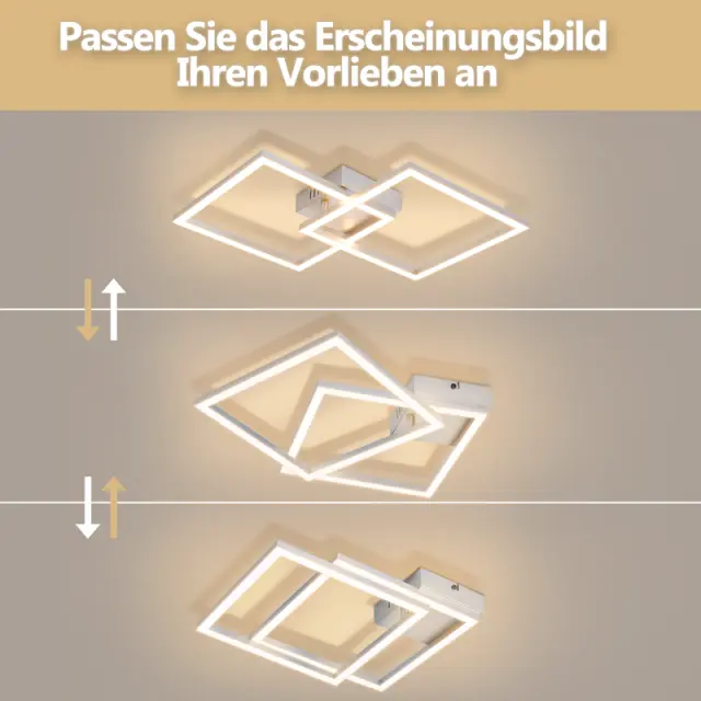 Vrtljivi dizajn: Ta LED stropna luč vsebuje dva kvadratna svetlobna elementa. Eden od njiju je nastavljiv, kar vam omogoča, da prilagodite videz luči in dodate edinstven pridih svoji dnevni sobi, spalnici ali katerikoli drugi prostor.