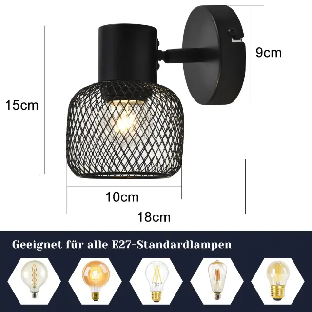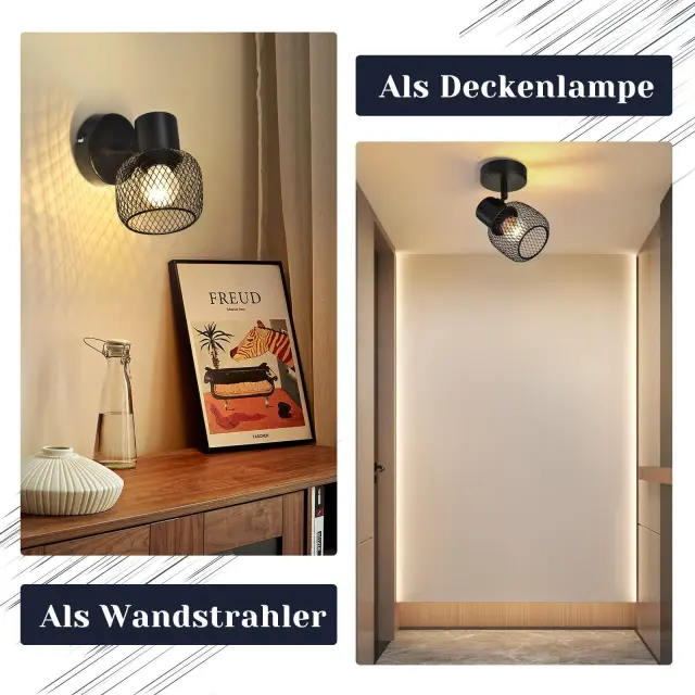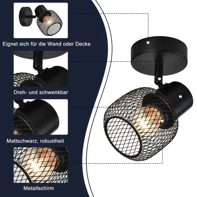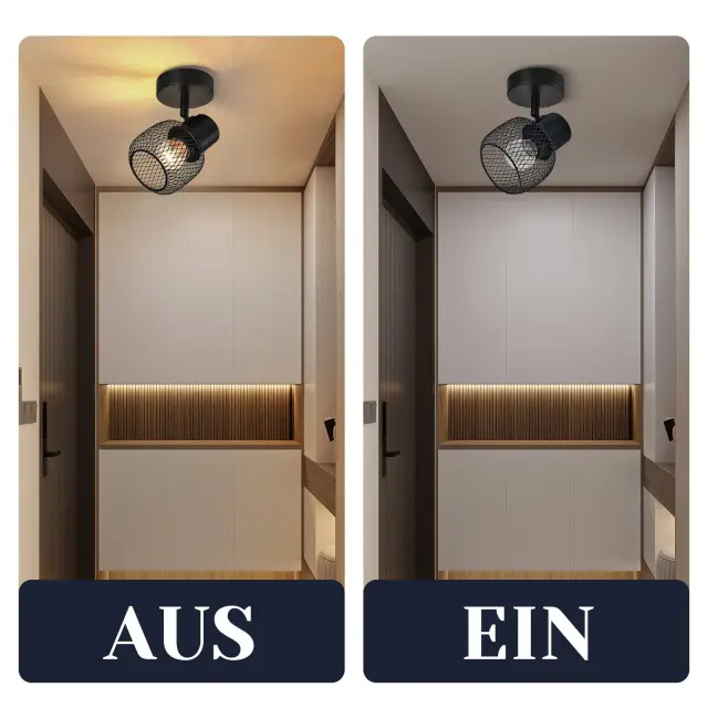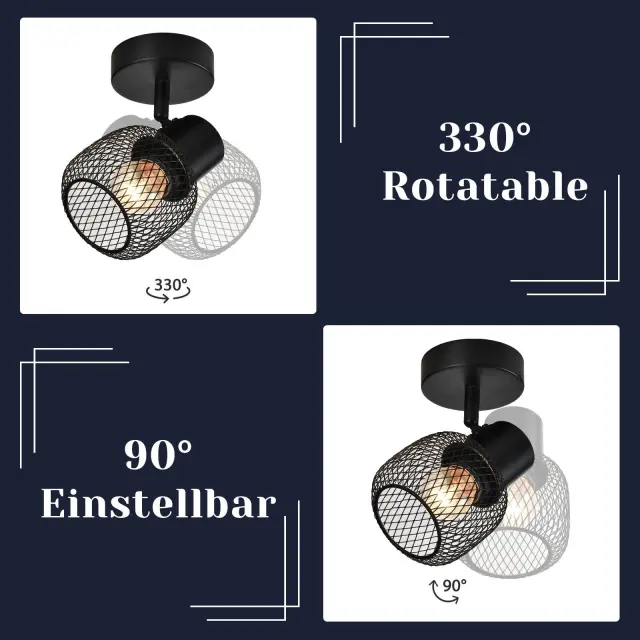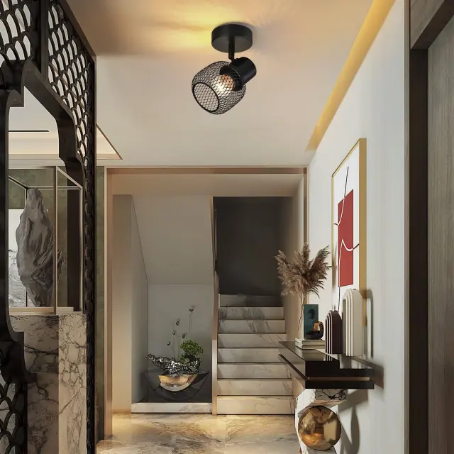 NETTLIFE Stropna svetilka, črna kovinska, vrtljiva, za notranjo uporabo, za hodnik, otroško sobo, dnevno sobo, spalnico, 40 W