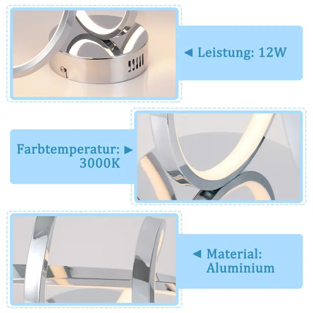NETTLIFE stropna svetilka za spalnico in dnevno sobo: 12W moderna, kromiran design, 3000K toplo bela LED za kuhinjo, hodnik