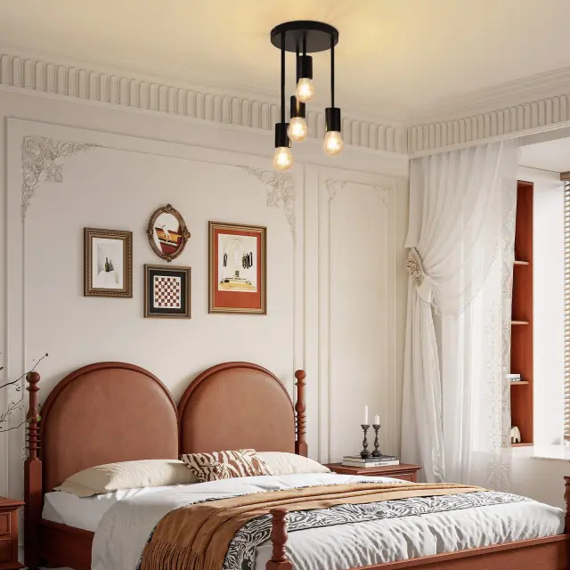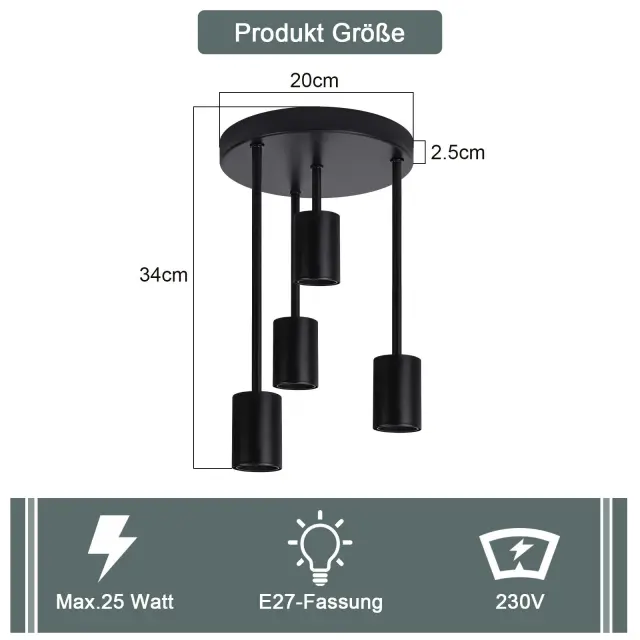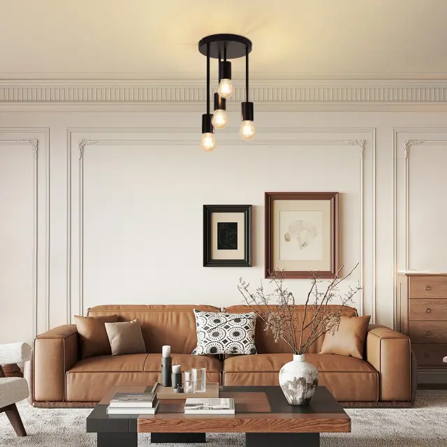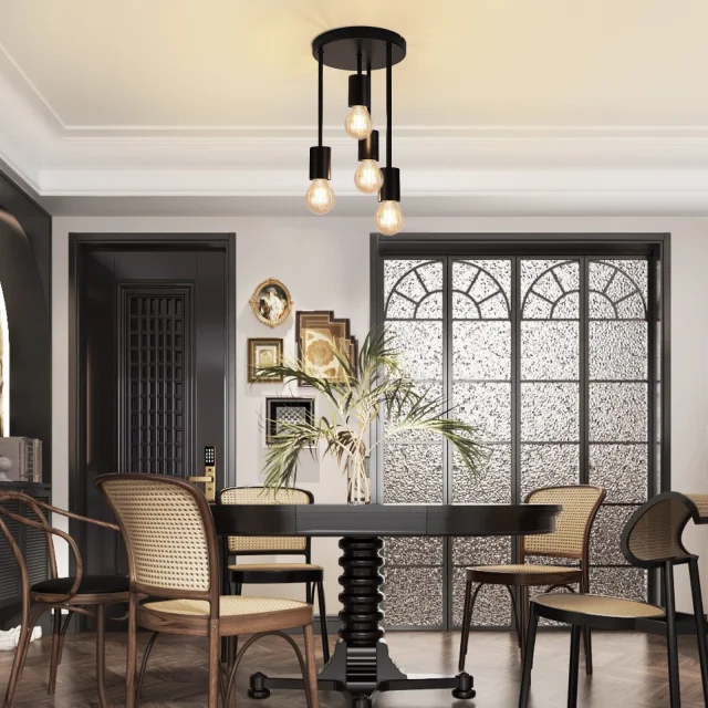 NETTLIFE Stropna svetilka vintage črna stropna svetilka 4 žarnice E27 retro industrijska kovinska brez žarnic
