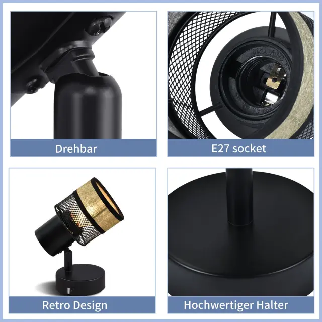 NETTLIFE Stropna svetilka 1 žarnica črna, za hodnik, kovinska, vintage zlata, E27 LED max 40W, nastavljiva 330°