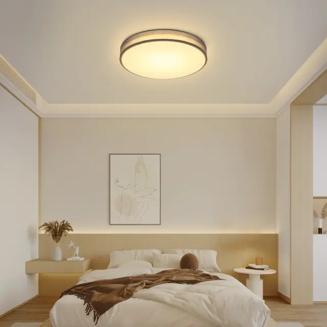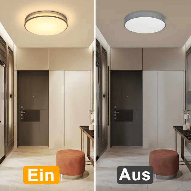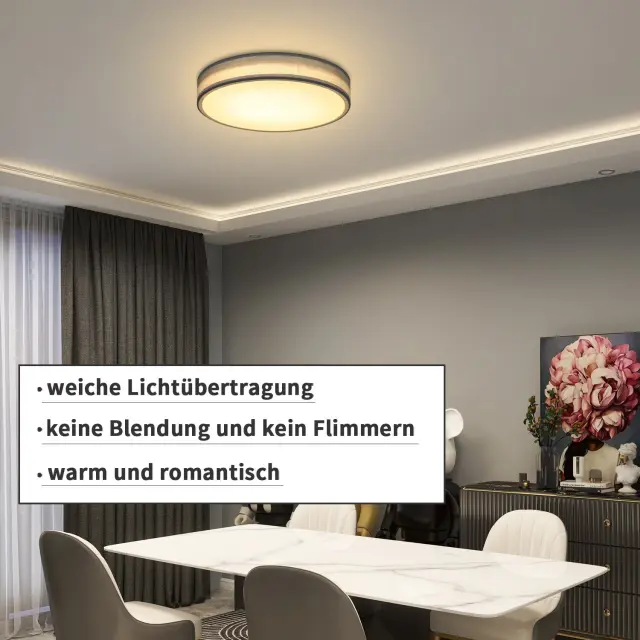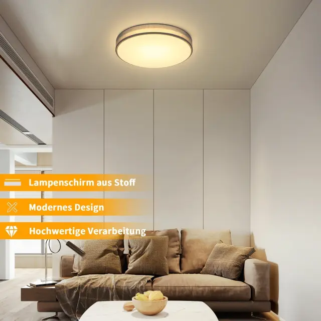 NETTLIFE Stropna svetilka okrogla, tkanina, senčnik, siva, moderna, kuhinja, kopalnica, spalnica, hodnik, 30 cm, 12 W