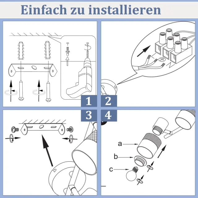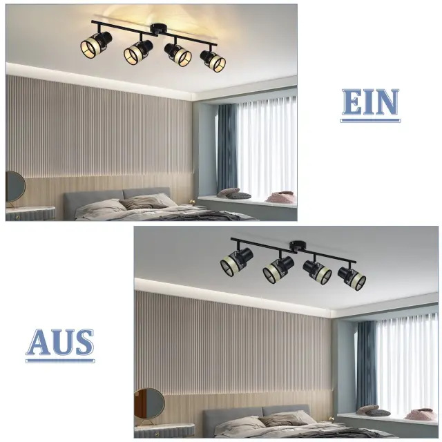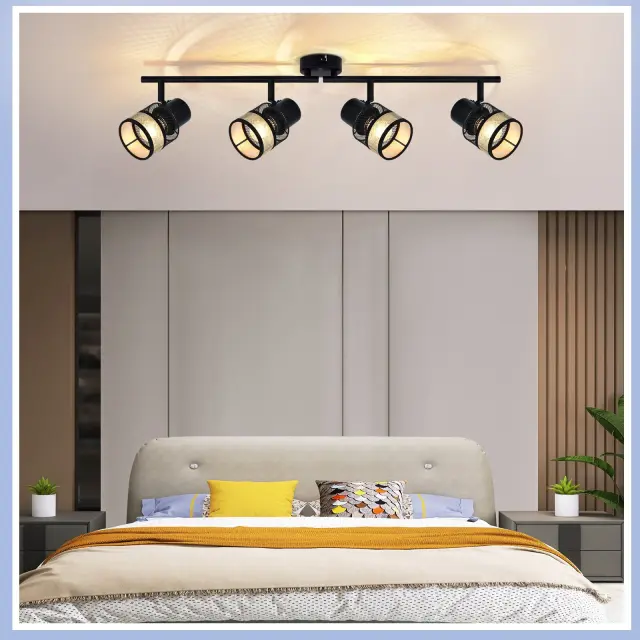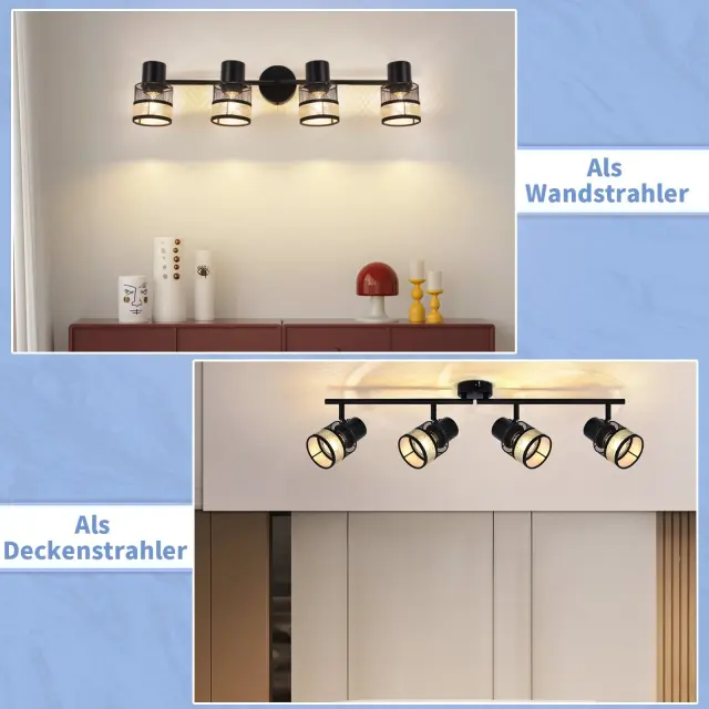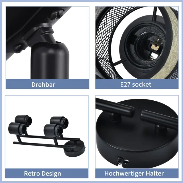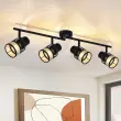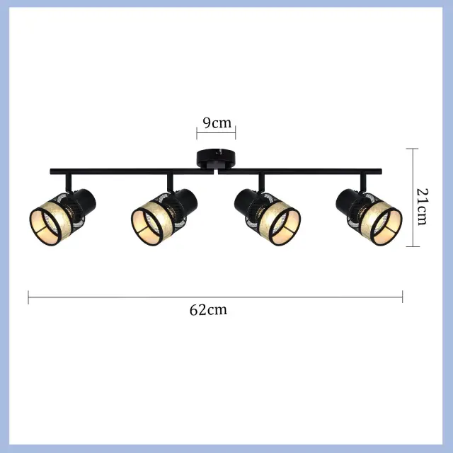 NETTLIFE stropna svetilka 4 kovinski reflektorji E27 max. 25W vintage črna 330° zlata tkanina senčnik za dnevno sobo, kuhinjo, stopnice, jedilnico