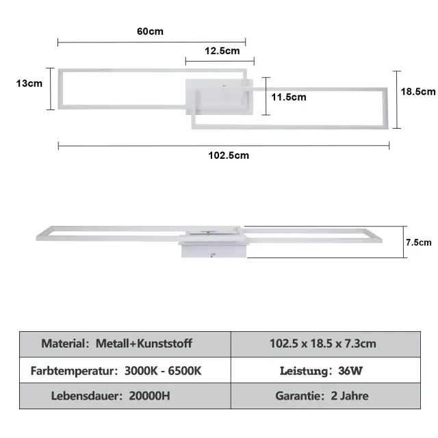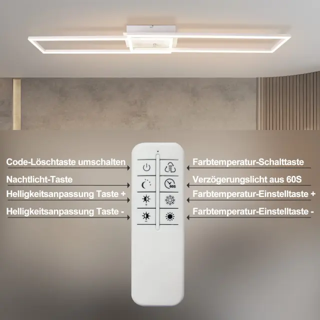 NETTLIFE stropna svetilka za dnevno sobo, LED stropna svetilka za kuhinjo z daljinskim upravljalnikom, moderna oblika, 3000K - 6500K, 36W