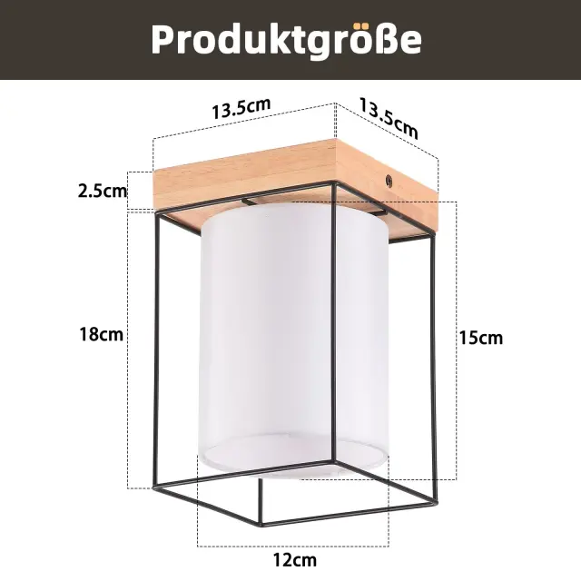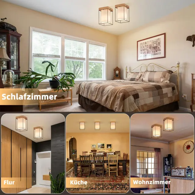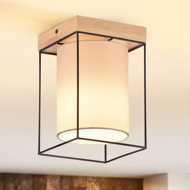 NETTLIFE Stropna svetilka za hodnik, lesena, 1 žarnica E14, vintage svetilka za hodnik z retro industrijsko barvo