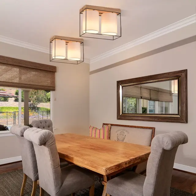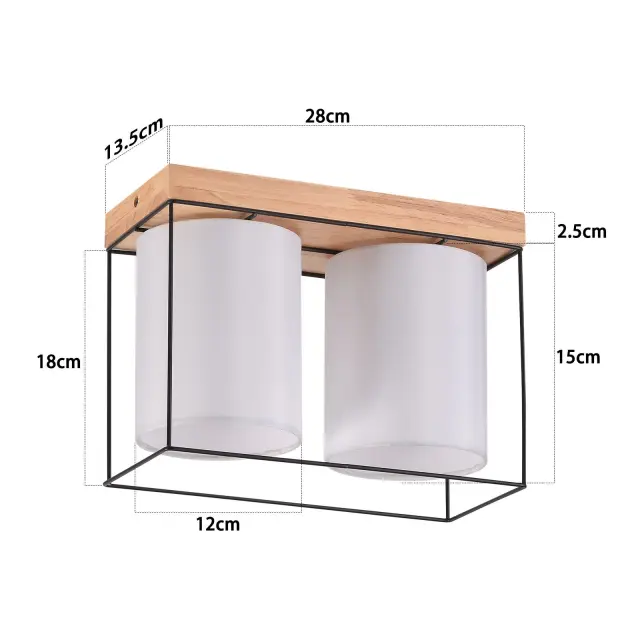 NETTLIFE Stropna svetilka za spalnico, vintage, lesena, 2 žarnici E14 z retro industrijskim vzorcem
