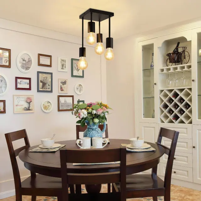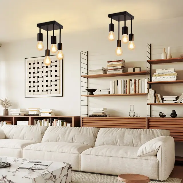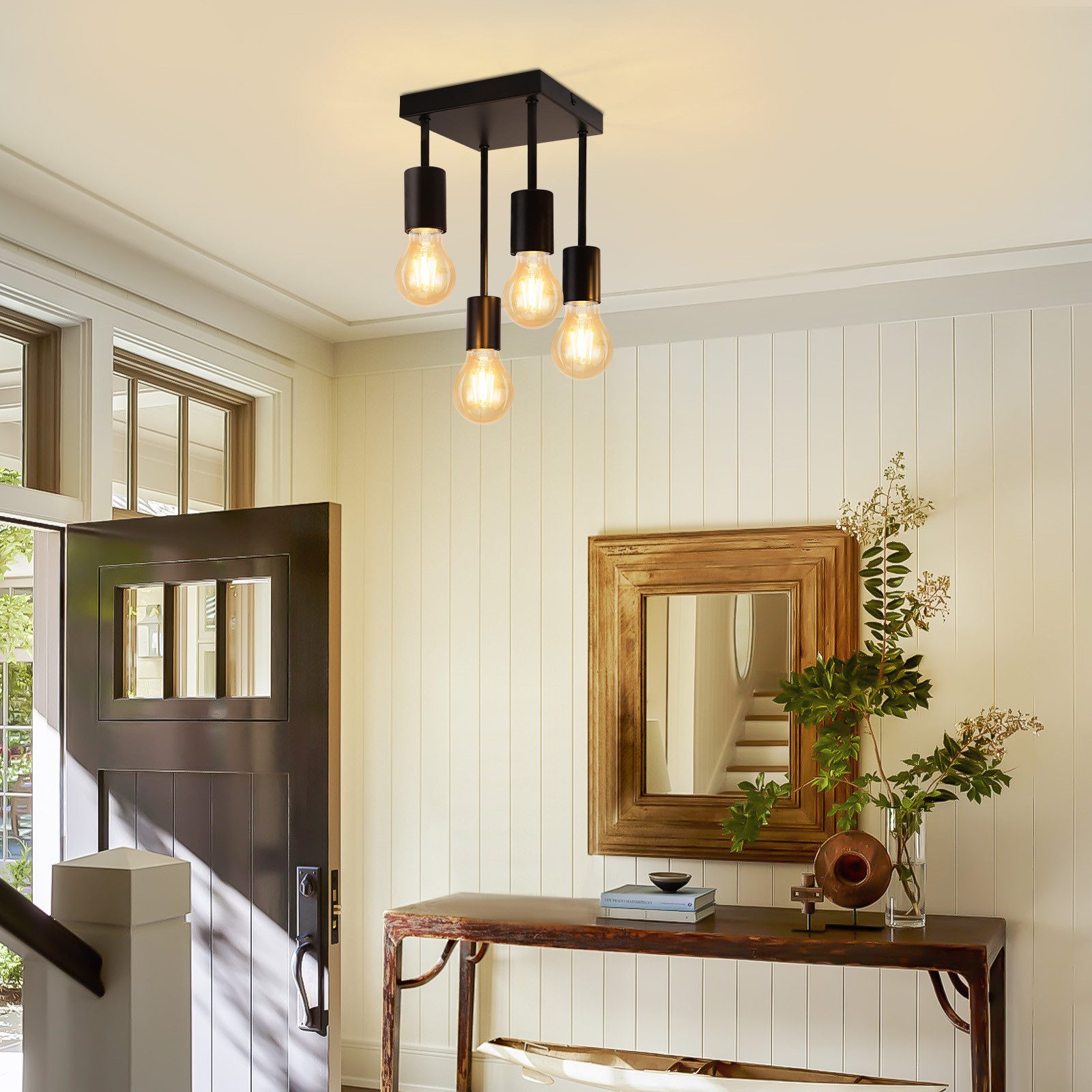 NETTLIFE Stropna svetilka Črna Vintage Stropna svetilka E27 4 Žarnice Retro Kovinska Brez Žarnic