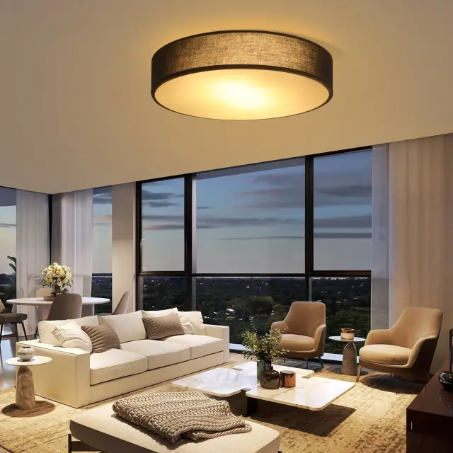 NETTLIFE Stropna svetilka za spalnico 38CM okrogla 2 žarnici E27 črna moderna svetilka za spalnico s senčnikom iz blaga kuhinja hodnik