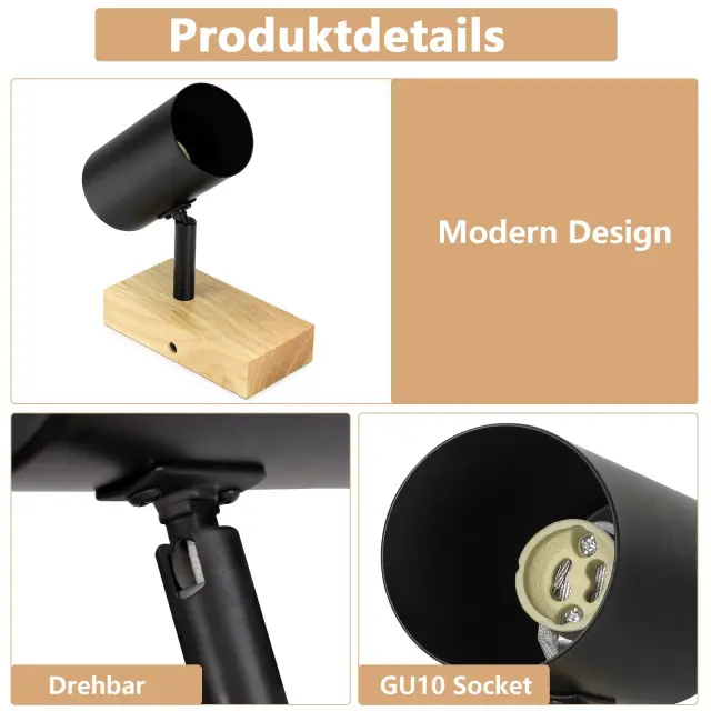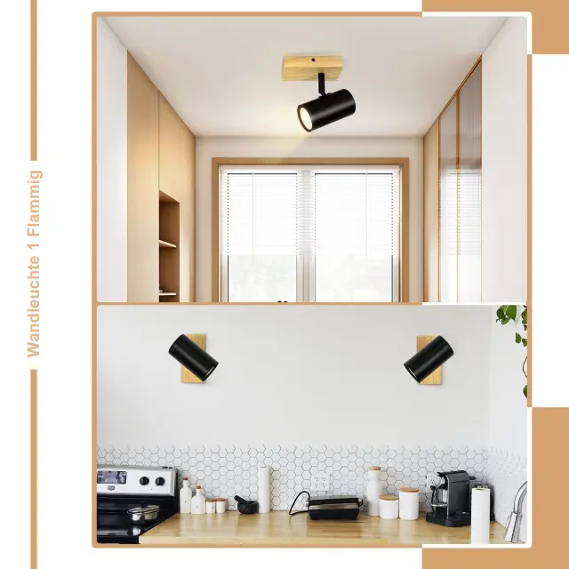NETTLIFE stropna svetilka z 1 plamenom, lesena - črna, stropna svetilka za hodnik, kovinska, retro GU10, vrtljiva 350°, stropna svetilka, max. 40 W