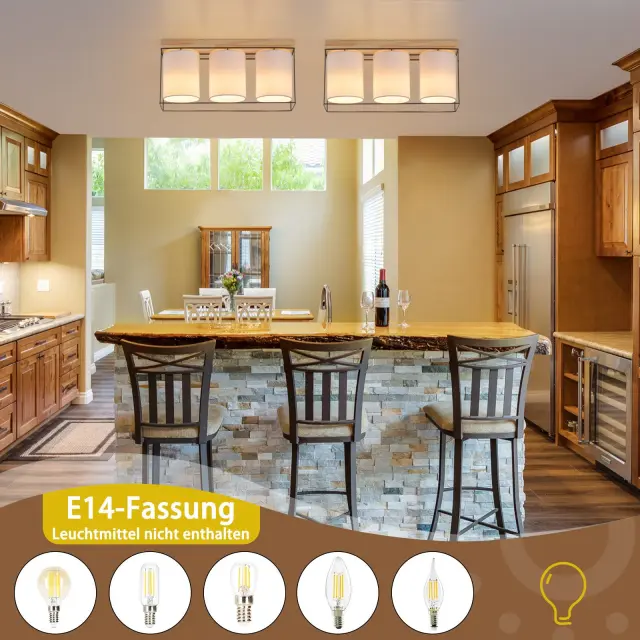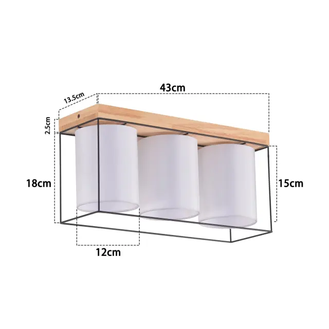 NETTLIFE Stropna svetilka za dnevno sobo, lesena, 3 žarnice E14, vintage z retro industrijskim vzorcem