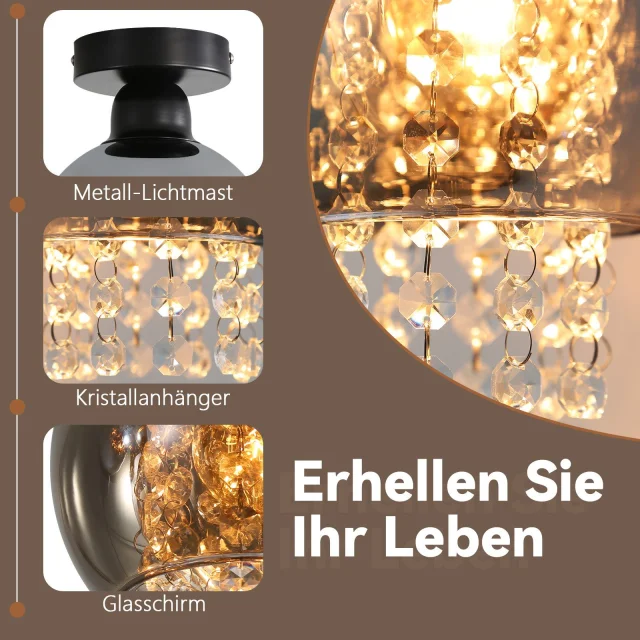 NETTLIFE Stropna svetilka za spalnico E27 dimljeno siva kristalno steklo moderna jedilnica