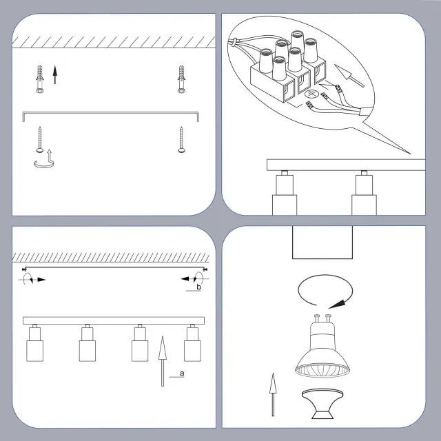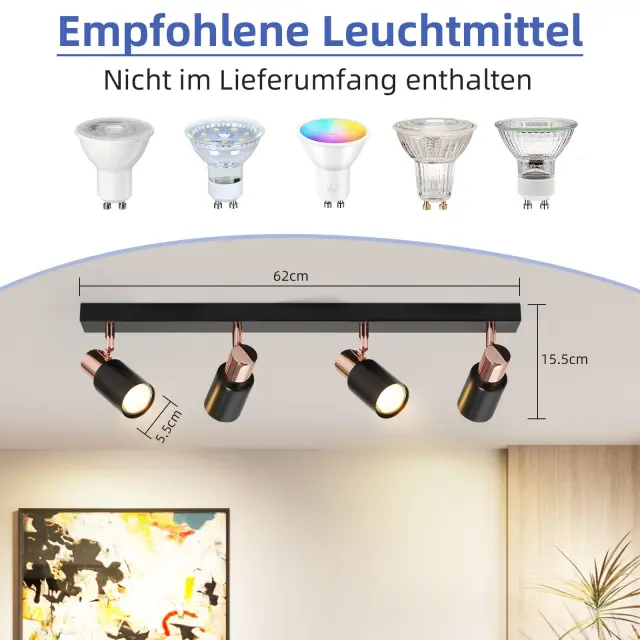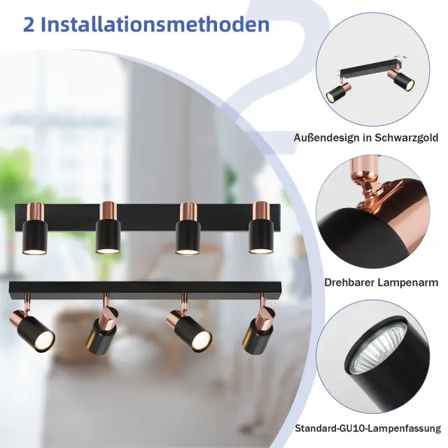 NETTLIFE Stropna svetilka s 4 žarnicami, kuhinjska svetilka GU10, vrtljiva stropna svetilka, moderna svetilka