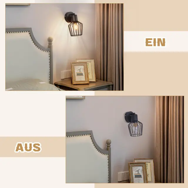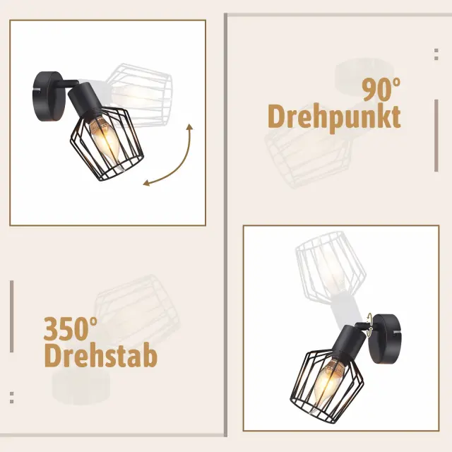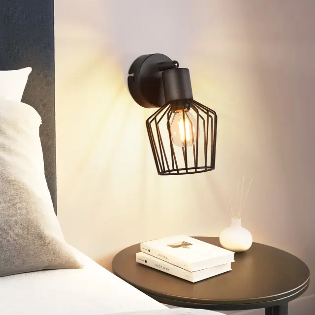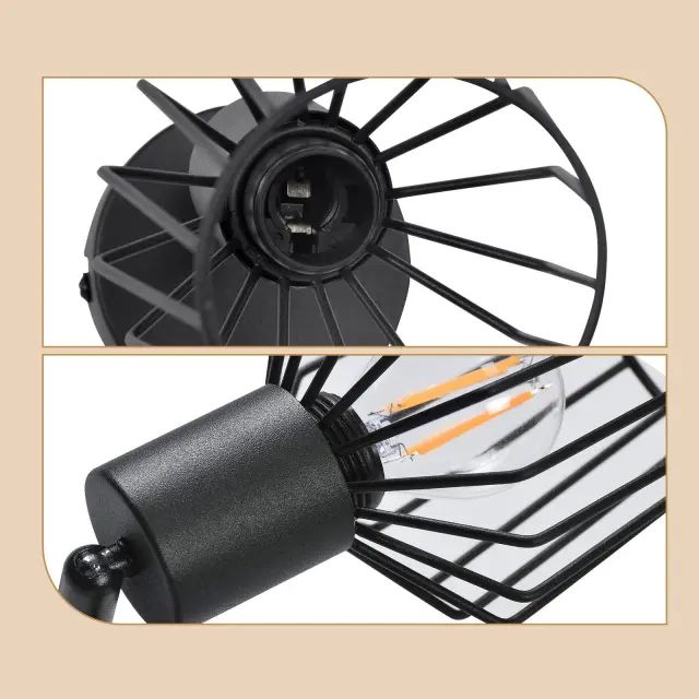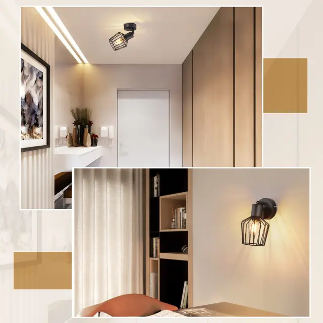NETTLIFE Stropna svetilka E14 - kovinska, industrijska svetilka za hodnik, stenska svetilka za hodnik in dnevno sobo, črna