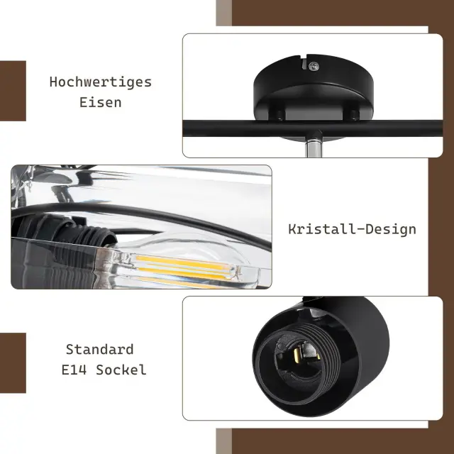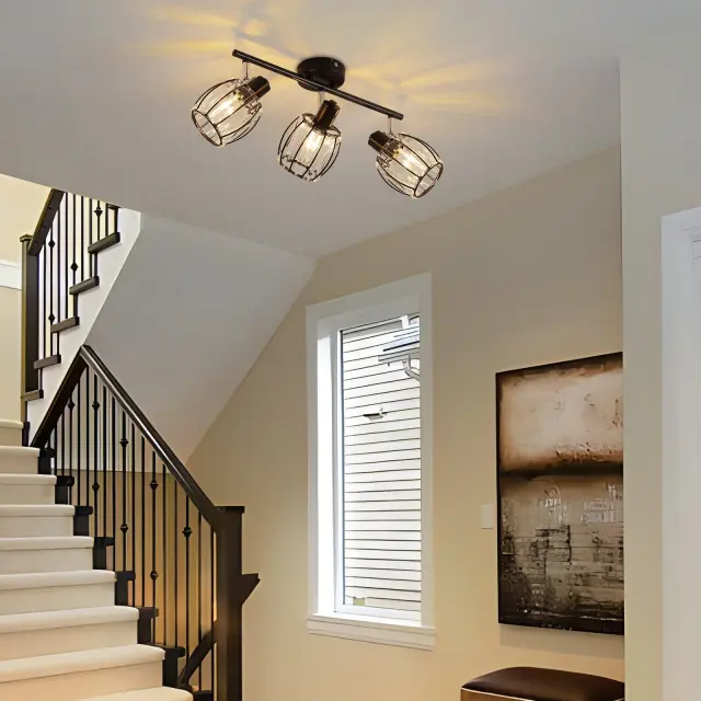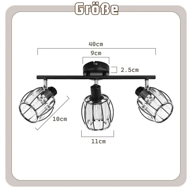 NETTLIFE Stropna svetilka, reflektor, 3 plameni, retro E14, stropna svetilka, kristalni senčnik za hotel