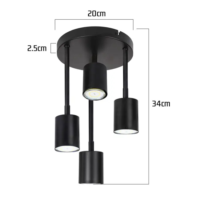NETTLIFE Stropna svetilka s 4 žarnicami, črna, nastavljiva, LED GU10, kuhinjska svetilka